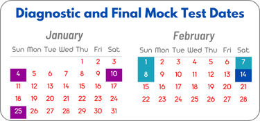 Students will take a Diagnostic Test at the beginning of the ACT Prep session. These tests are scheduled on January 4th, 10th, and 25th at 1:30pm. Students will also take a Final Mock Test at the end of the session as a full-length practice test. These tests are scheduled on February 1st, 7th, and 8th at 1:30pm. If students cannot attend one of those tests, then contact us to make an appointment.