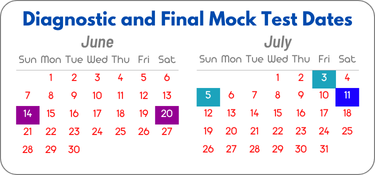 Students will take a Diagnostic Test at the beginning of the ACT Prep session. These tests are scheduled on July 14th and 20th at 1:30pm. Students will also take a Final Mock Test at the end of the session as a full-length practice test. These tests are scheduled on July 3rd and 5th at 1:30pm. If students cannot attend one of those tests, then contact us to make an appointment.