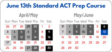 If you are interested in registering for either the Standard Course or the Crash Course for the June 13th ACT test, please fill out the registration form below and pay the full amount to secure a seat in the class. We have several class options, and there will be make-up classes available by request. There are no classes over Graduation/Finals Week and Memorial Day (May 18th-26th) as well as Mother's Day (May 10th).