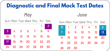 Students will take a Diagnostic Test at the beginning of the ACT Prep session. These tests are scheduled on May 2nd, 3rd, and 17th and at 1:30pm. Students will also take a Final Mock Test at the end of the session as a full-length practice test. These tests are scheduled on May 31st and June 6th and 7th at 1:30pm. If students cannot attend one of those tests, then contact us to make an appointment.