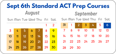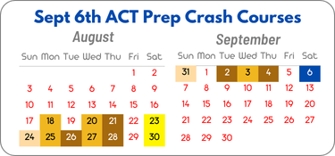 If you are interested in registering for either the Standard Course or the Crash Course for the September 6th ACT test, please fill out the registration form below and pay the full amount to secure a seat in the class. We have several class options, and there will be make-up classes available by request. There is no class on Labor Day (September 1st).