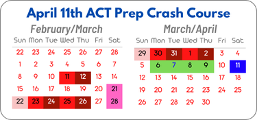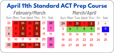 If you are interested in registering for either the Standard Course or the Crash Course for the April 11th or April 7th ACT test, please fill out the registration form below and pay the full amount to secure a seat in the class. We have several class options, and there will be make-up classes available by request. There are no classes over Spring Break (March 14th-19th) or on Easter Weekend (April 4th-5th). There is a bonus week of classes the week of the in-school test on April 7th and before the Saturday test on the 11th. It is highly recommended that juniors register for the Saturday test as well as take the in-school test. For students who are taking the Saturday test on the 11th, the final bonus week can function as extra classes or as make-up classes. If your child is taking an in-school test that is not on April 7th, please let us know what their test date is.