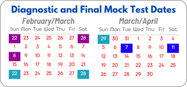 Students will take a Diagnostic Test at the beginning of the ACT Prep session. These tests are scheduled on February 22nd and 28th and March 8th at 1:30pm. Students will also take a Final Mock Test at the end of the session as a full-length practice test. These tests are scheduled on March 22nd, 28th, and 29th at 1:30pm. If students cannot attend one of those tests, then contact us to make an appointment.