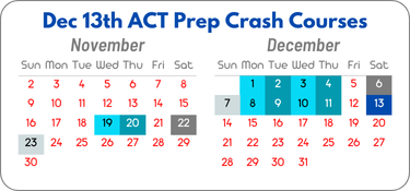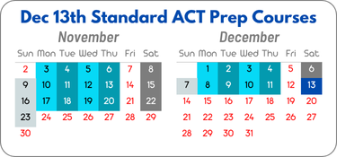 If you are interested in registering for either the Standard Course or the Crash Course for the December 13th ACT test, please fill out the registration form below and pay the full amount to secure a seat in the class. We have several class options, and there will be make-up classes available by request. There are no classes over Thanksgiving Break (November 24th-30th).